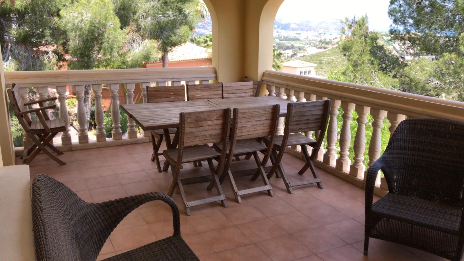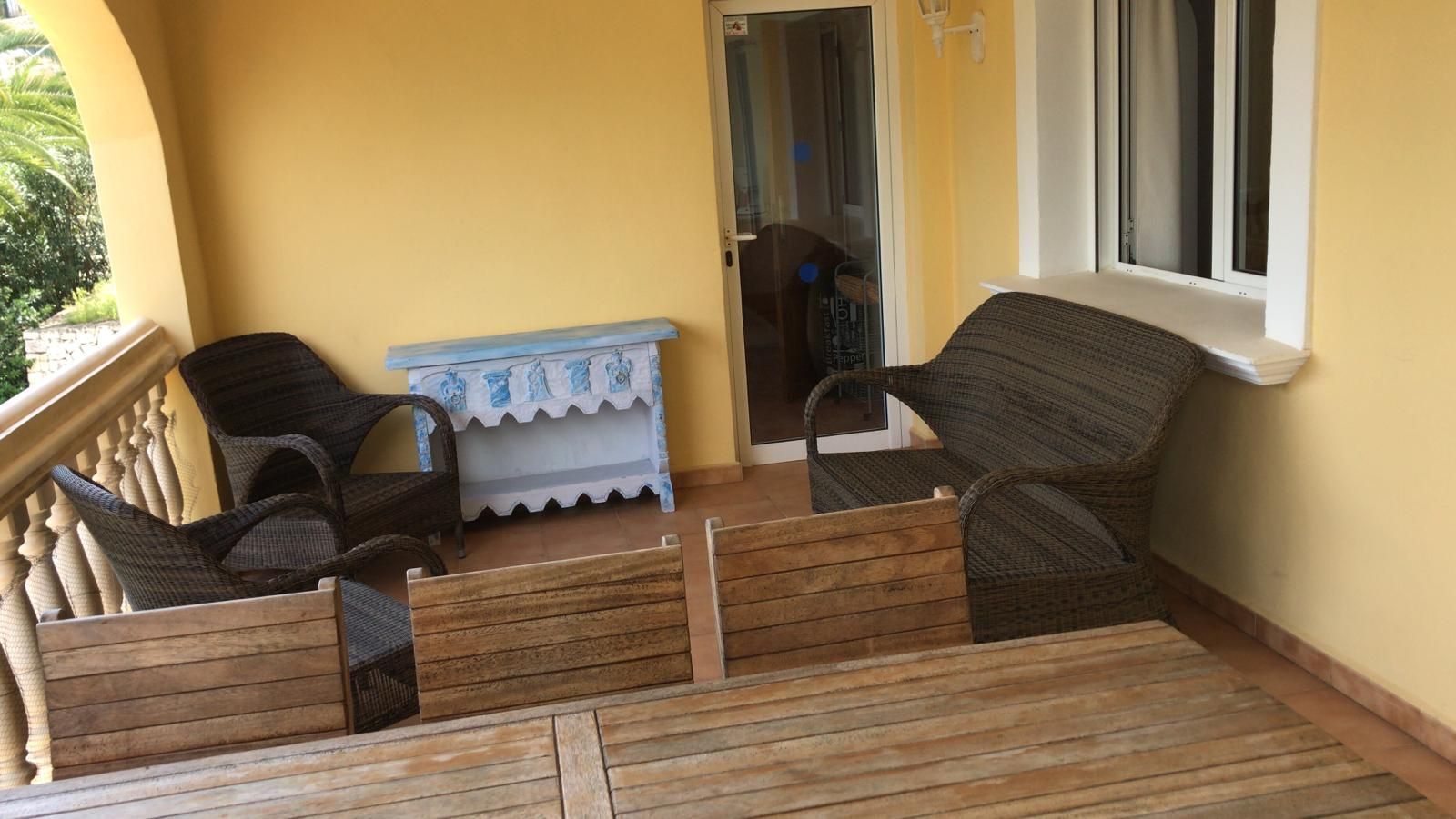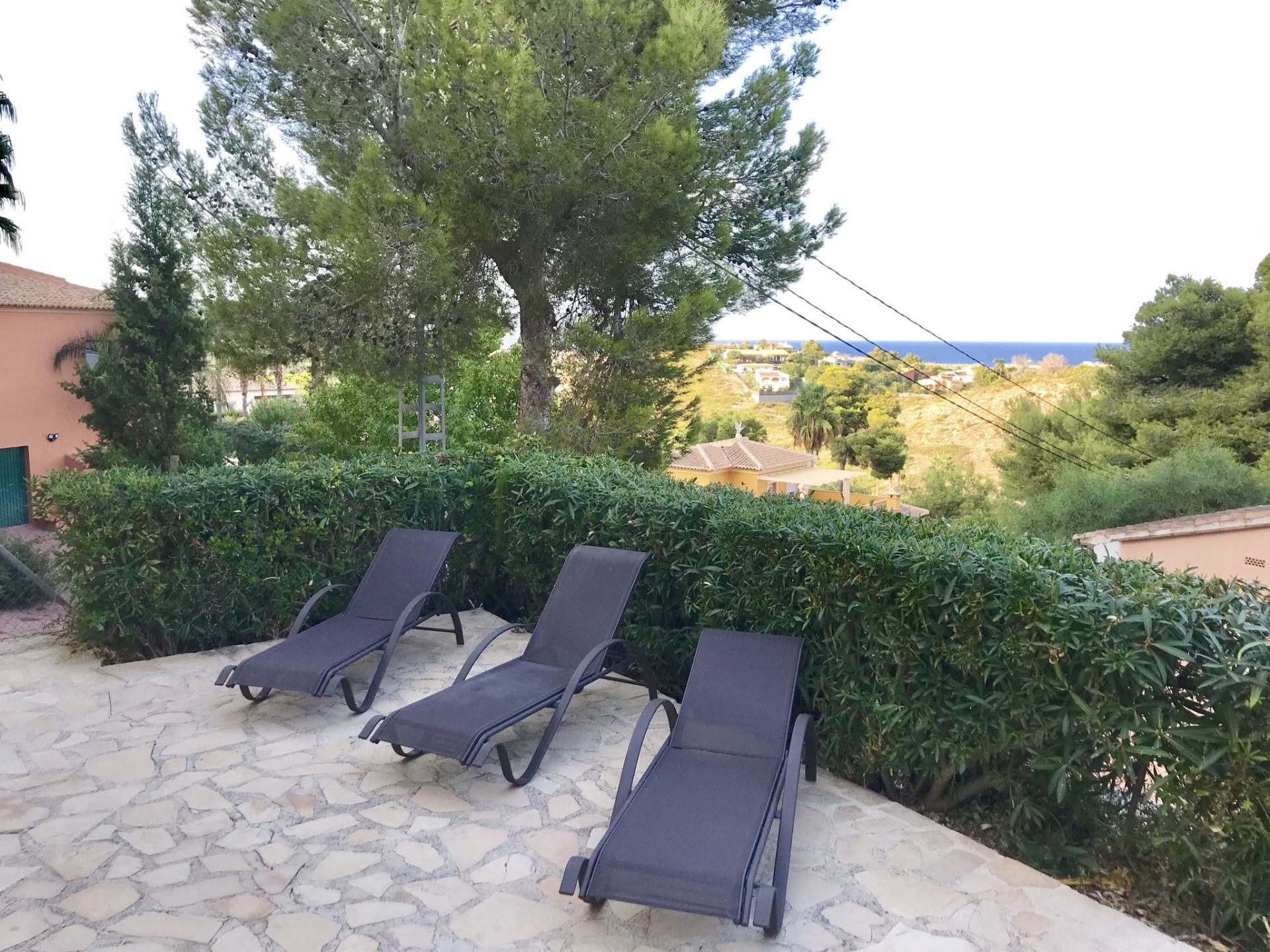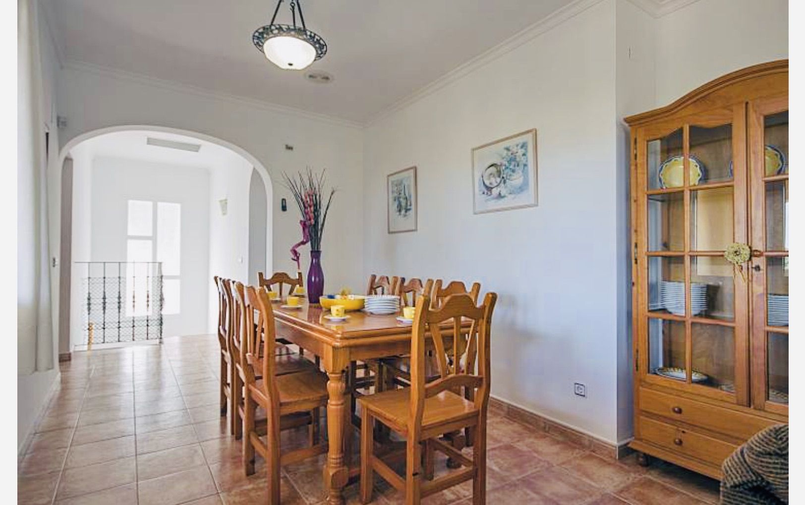 La villa tiene 4 dormitorios dobles, 3 baños (uno de ellos en suite), 1aseo, 1 terraza cubierta con vistas parciales al mar.