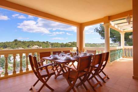 La villa tiene 5 dormitorios dobles, 4 baños (dos de ellos en suite), 2 terrazas cubiertas con vistas parciales al mar.